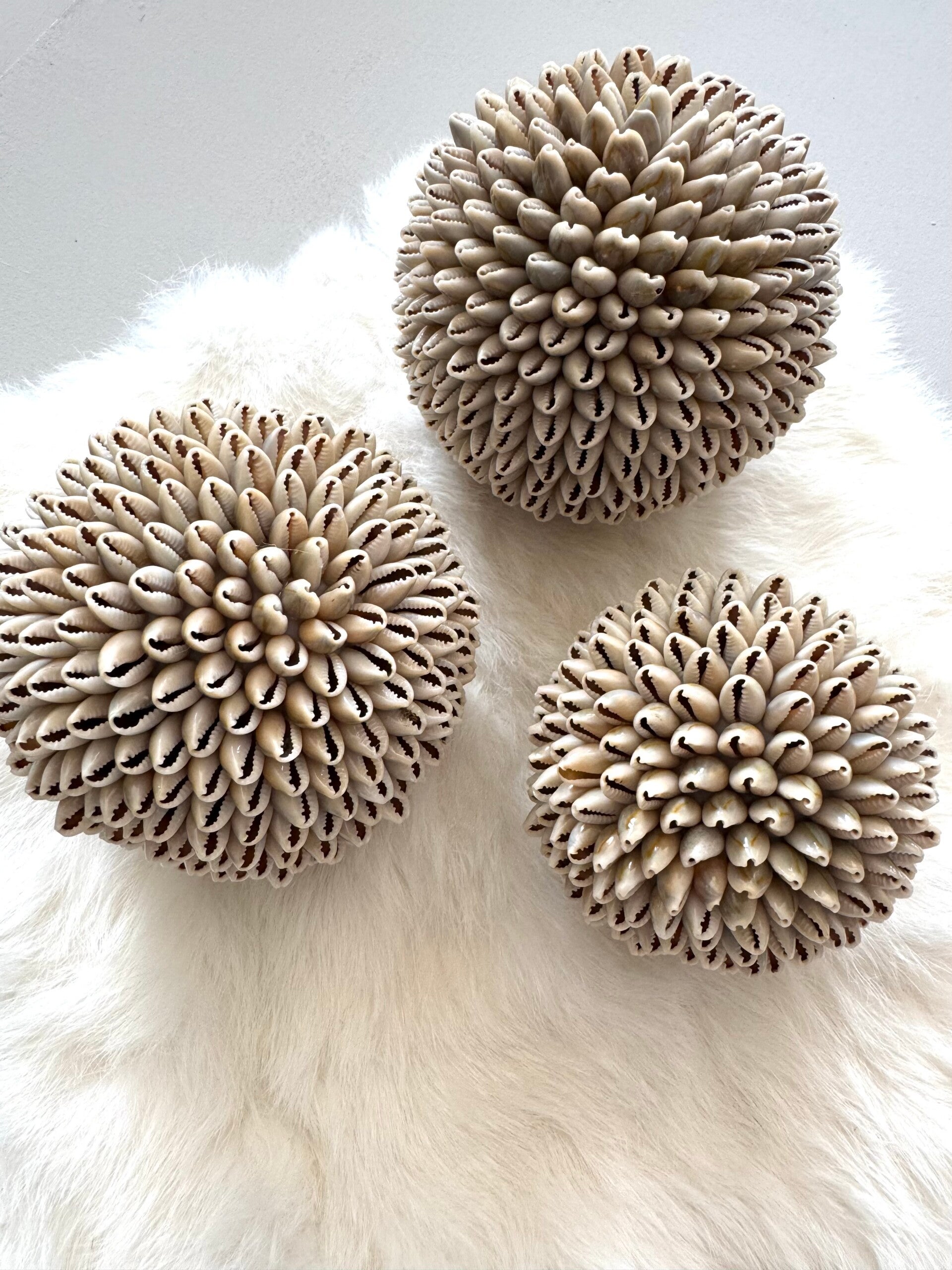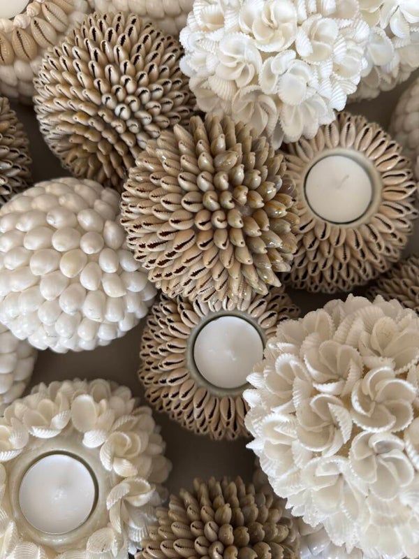 Deze schelpenbollen zijn super leuk te combineren met de bijpassende waxinelichtjes of leuk als decoratie op een dienblad.